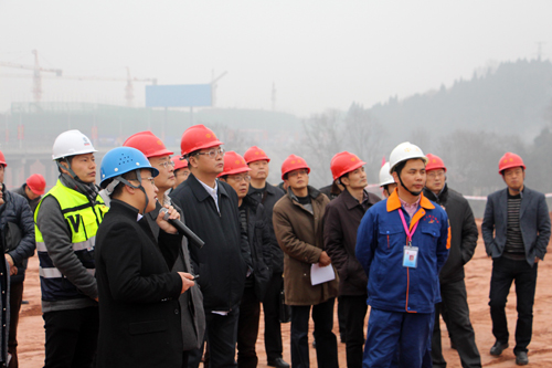 1月14日上午,四川簡陽市委書記王宏斌來到中太建設集團承建的唯品會(中國)西部總部基地項目現場,實地觀看了施工作業情況,并組織召開座談會,對一期工程施工進度及質量給予高度肯定。簡陽市長趙春淦、市委副書記王德彰、副市長陳建龍及市政府、市人大、市政協及政府相關職能部門三十余人陪同視察。