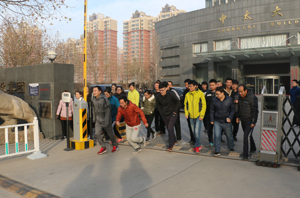 12月9日上午,在冬季暖陽的日子里,中太建設集團舉行2017年度員工冬季健身跑活動。來自建設集團機關和廊坊區域內的各單位40多名代表參賽選手齊聚中太大廈門前,在發令員的一聲指令下達后,全體參賽選手沿著指定路線向終點進發。