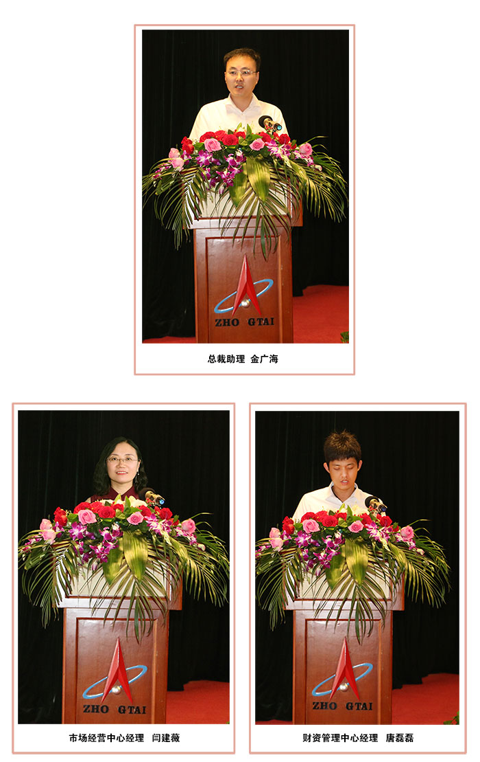 總裁助理金廣海同志做企業經營及市場拓展報告;建設集團市場經營中心經理閆建薇;財務資金中心經理唐磊磊分別做了表態發言。