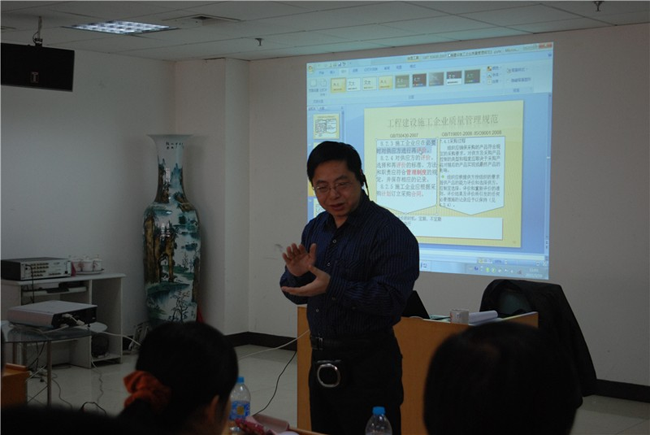根據集團公司2011年度培訓計劃安排,31821日,人力資源部與技術質量部在中太大廈17樓職教室聯合舉辦了為期4天的“GB/T50430-2007《工程建設施工企業質量管理規范》及三體系合一的編寫”培訓班。公司內審員、機關各部室的相關人員、各工程局總工程師(體系負責人)、總部區域各公司總工程師(體系負責人)70多人參加了培訓。培訓班由華夏認證中心高級講師朱躍進授課。