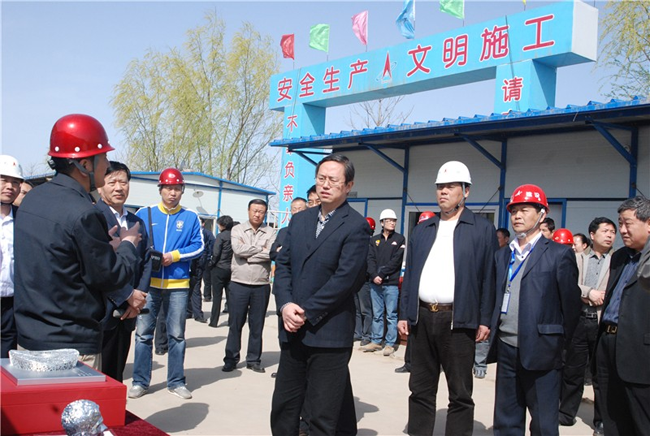 集團總裁張明禮(前右3)陪同趙世洪書記(前右4)在現(xiàn)場考察