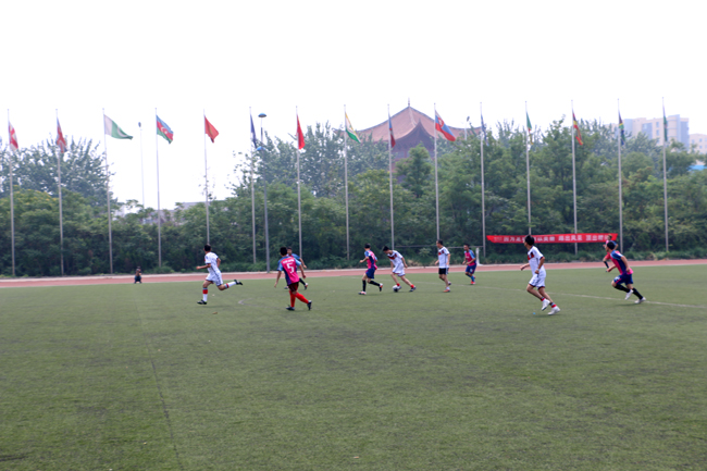 6月22日上午,正值世界杯期間,中太建設集團與唯品會天津物流有限公司的員工足球愛好者們在天津武清區天獅學院舉行了一場足球友誼賽,有效增進了雙方友誼,為雙方進一步戰略合作打下堅實基礎。圖為比賽現場。